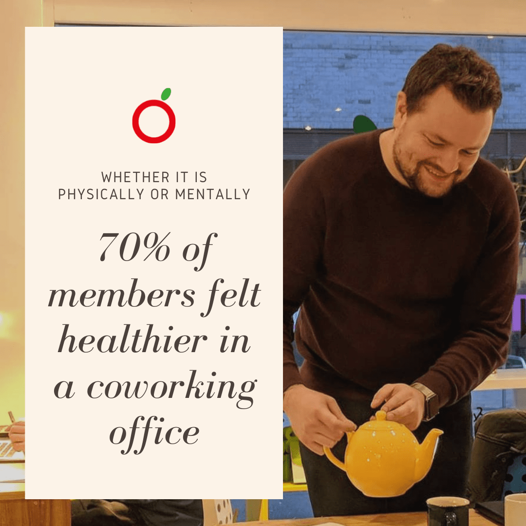 Coworking provides an environment that is comfortable and stress free, where people report feeling healthier whilst working. The positive space and lack of rigidity found within a traditional office space, means that people get all the positives of working from home, whilst being surrounded by other people. Mentally, people report feeling happier which in turn means that they feel healthier when surrounded by other likeminded people.