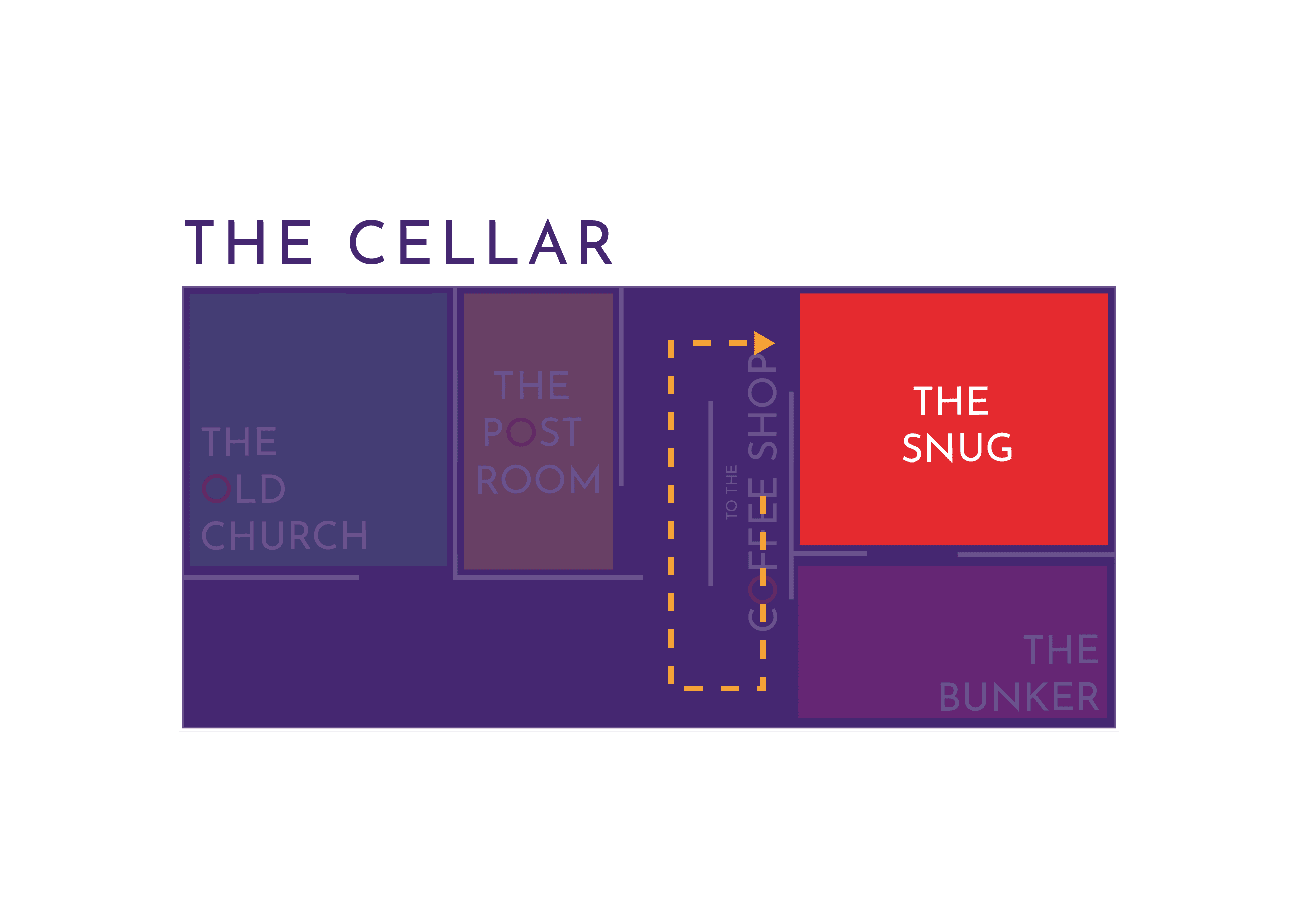 The Snug is set in the old working kitchen of the household. A beautiful vaulted ceiling meets a large stone fireplace. This space can seat around 6 people for a relaxed meeting. You’ll find this space by going right at the bottom of the cellar steps, right again past The Post Room and right again under the cellar steps. See our map to find your way.